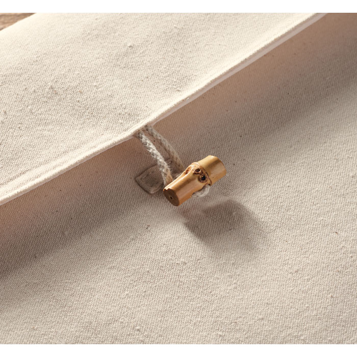 15-calowa wyściełana torba na laptopa z bawełny 220 gr/m². Wewnętrzna podszewka 120 gr/m². Bambusowe zapięcie na guzik.