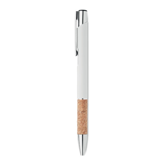 Przyciskany długopis z aluminium z korkowym uchwytem. Niebieski tusz.