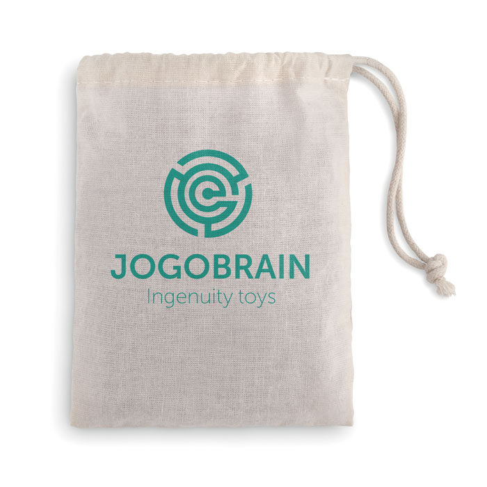 Drewniana łamigłówka w kształcie gwiazdy. Pakowana w bawełniany woreczek.