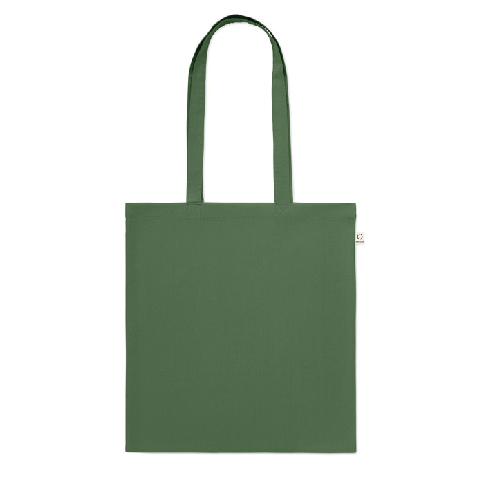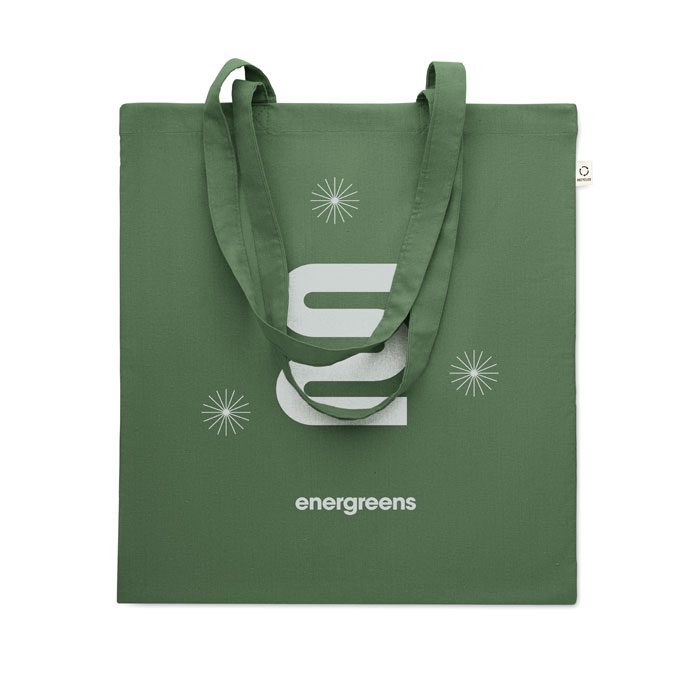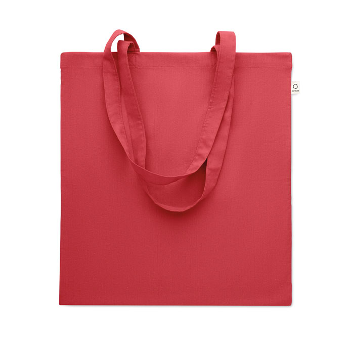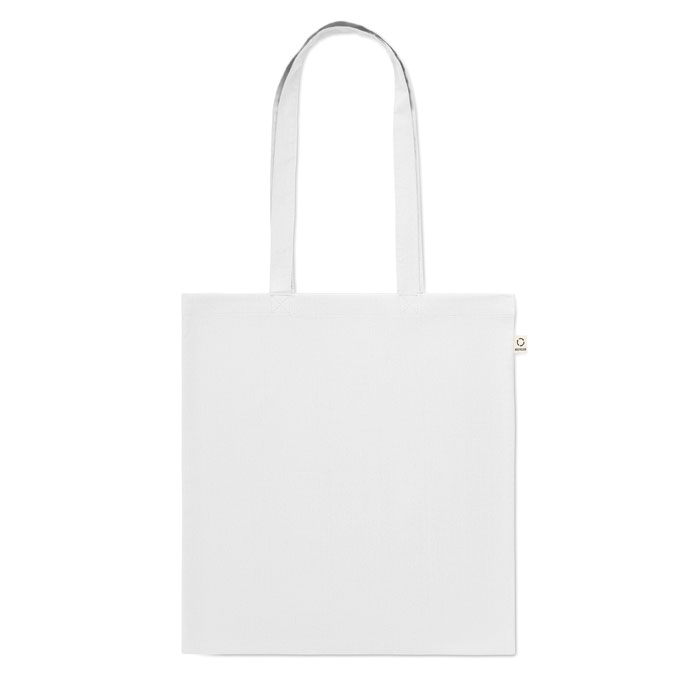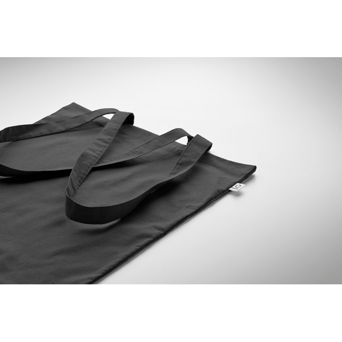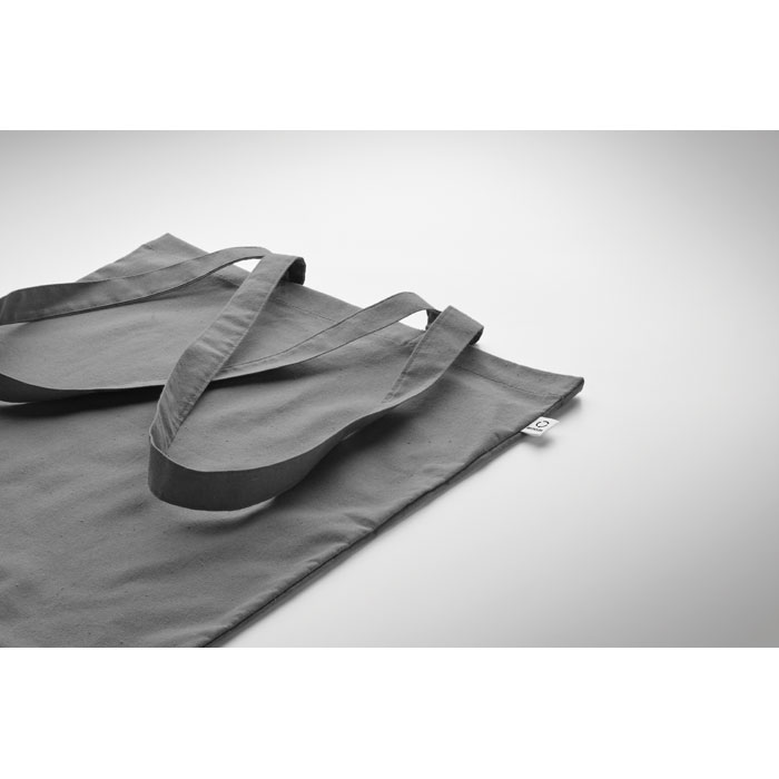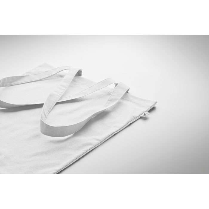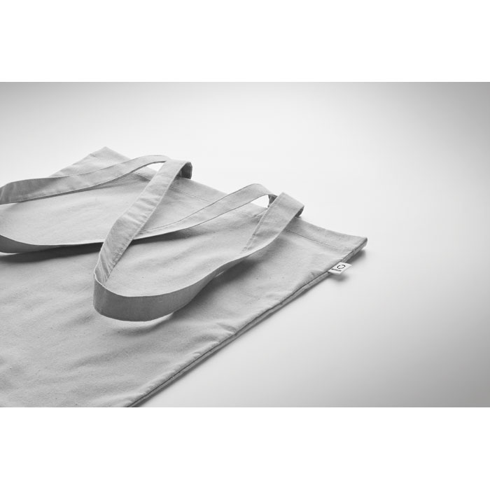 Bawełniana torba na zakupy z prekonsumenckiego recyklingu (70% bawełny z recyklingu i 30% RPET) z długimi uchwytami. 140 gr/m².