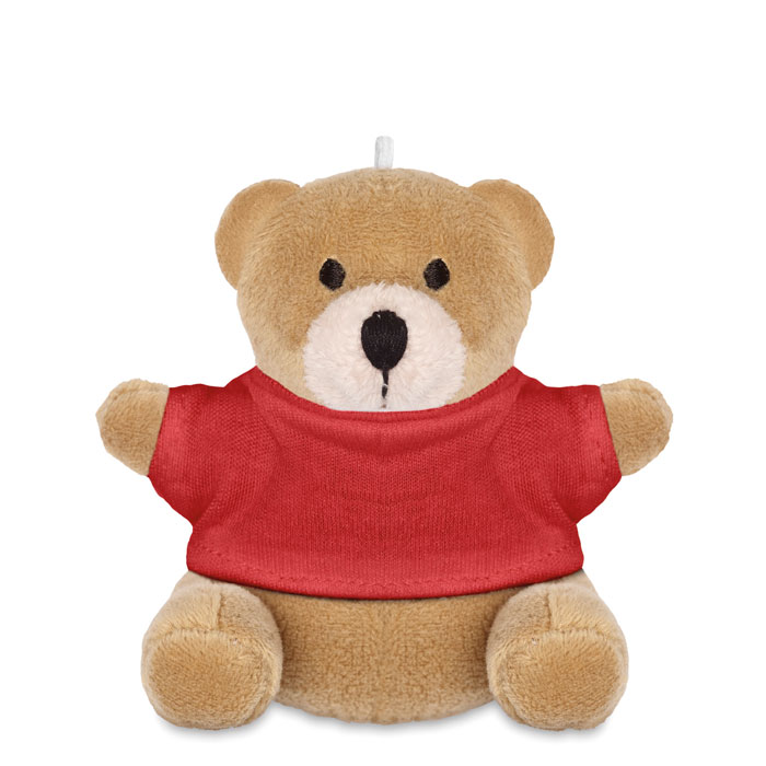 Breloczek w kształcie misia z możliwością znakowania na koszulce ze 100% bawełny.