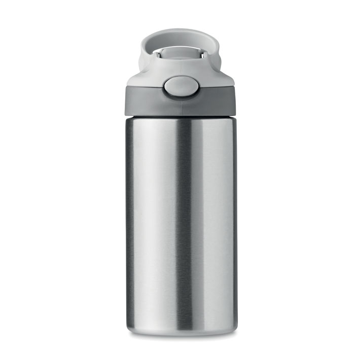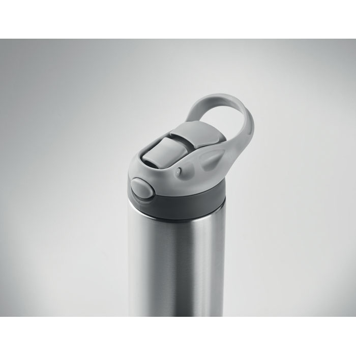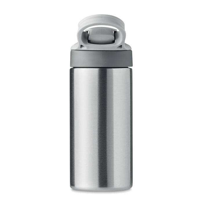 Butelka próżniowa z podwójną ścianką ze stali nierdzewnej z silikonowym ustnikiem na pokrywie. Pojemność: 350 ml. Nie przecieka.