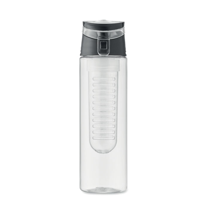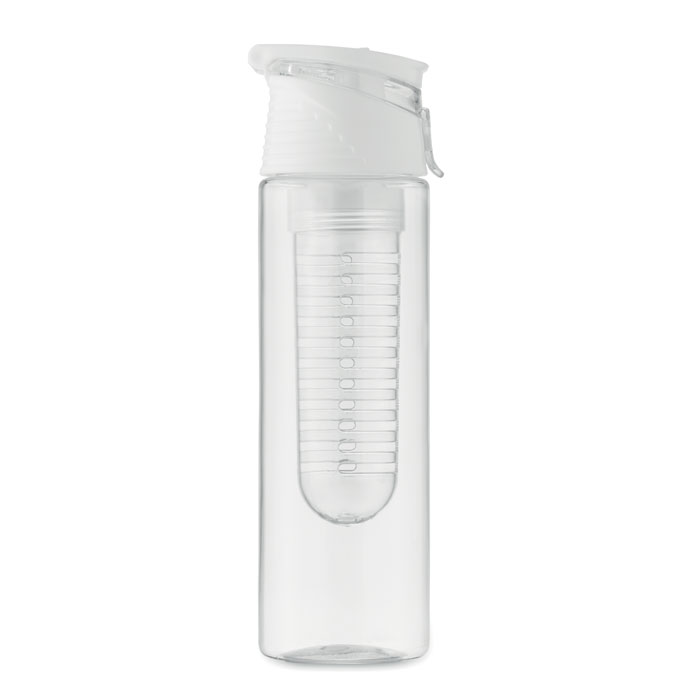Butelka na wodę z RPET z wyjmowanym sitkiem do owoców, uchwytem do przenoszenia i szczelną zakrętką. Pojemność 500 ml.