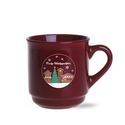 Kubek opracowany na potrzeby jarmarków świątecznych. Posiada klasyczny kształt uchwytu oraz prosty korpus, umożliwiający sztaplowanie. Kubek posiada znacznik cechy ukazującej pojemność 200ml oraz znak podmiotu odpowiedzialnego za wprowadzenie na rynek. Oznaczenia są zgodne z wymogami Unii Europejskiej