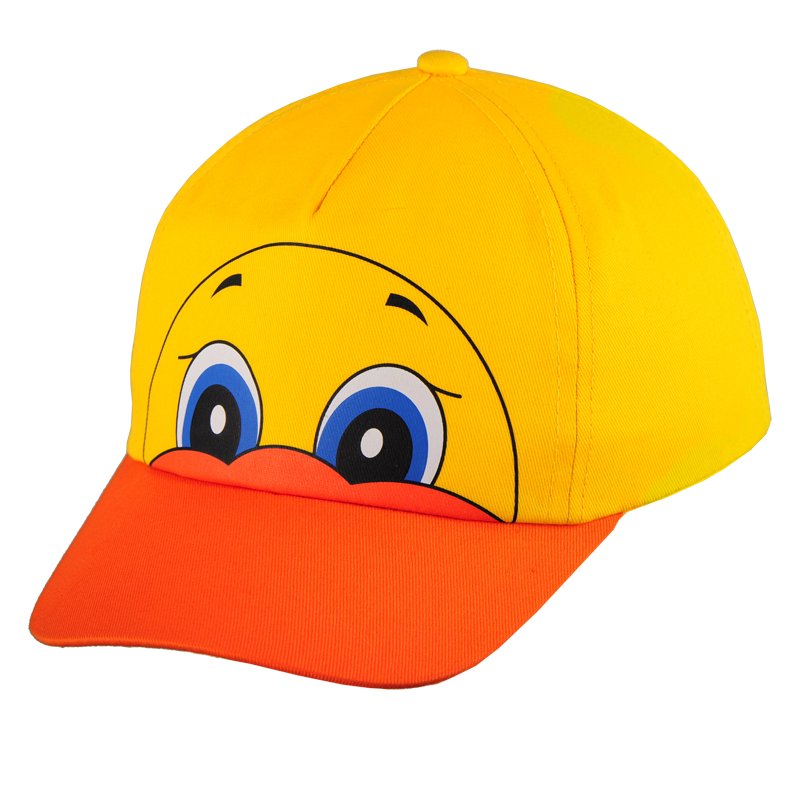 Bawełniana czapka dla dzieci – kaczuszka. Posiada możliwość regulacji obwodu czapki za pomocą zapięcia na rzep. Gramatura czapki 165-170 g/m²