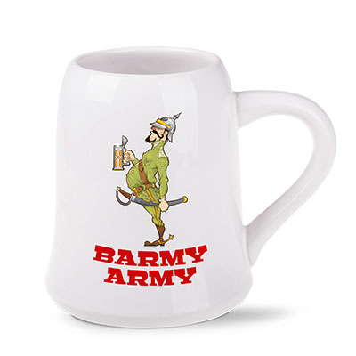 Ceramiczny kufel do piwa o klasycznych, obłych kształtach.
