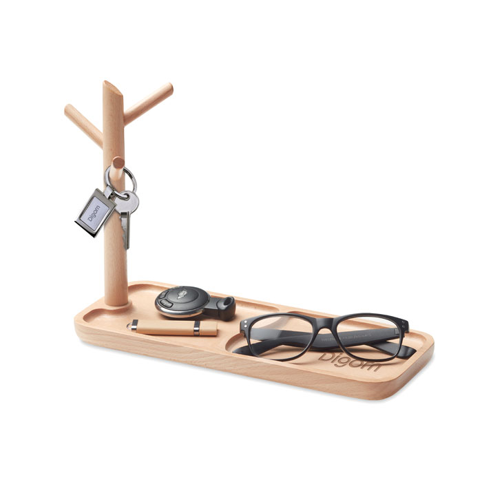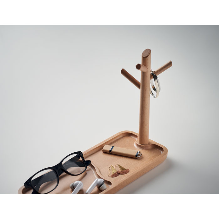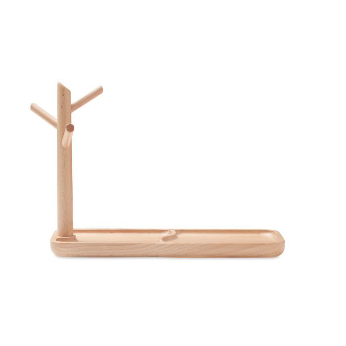 Drewniany organizer na klucze lub biżuterię z podstawką.