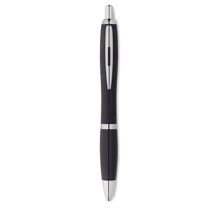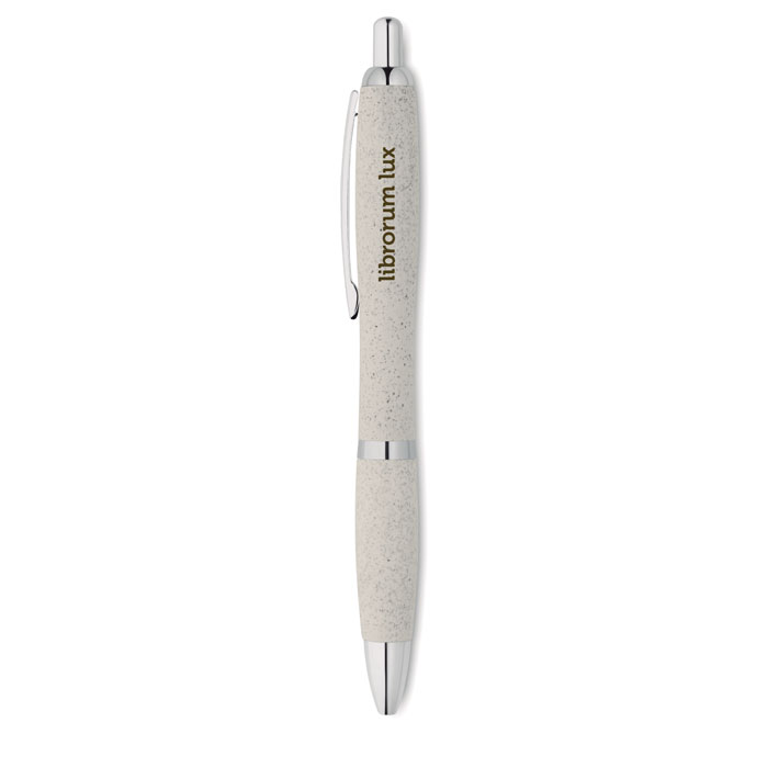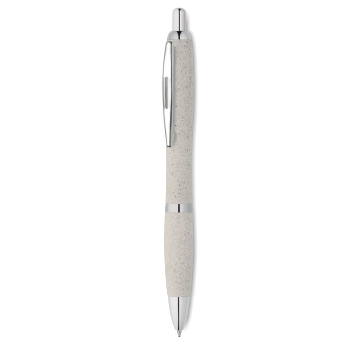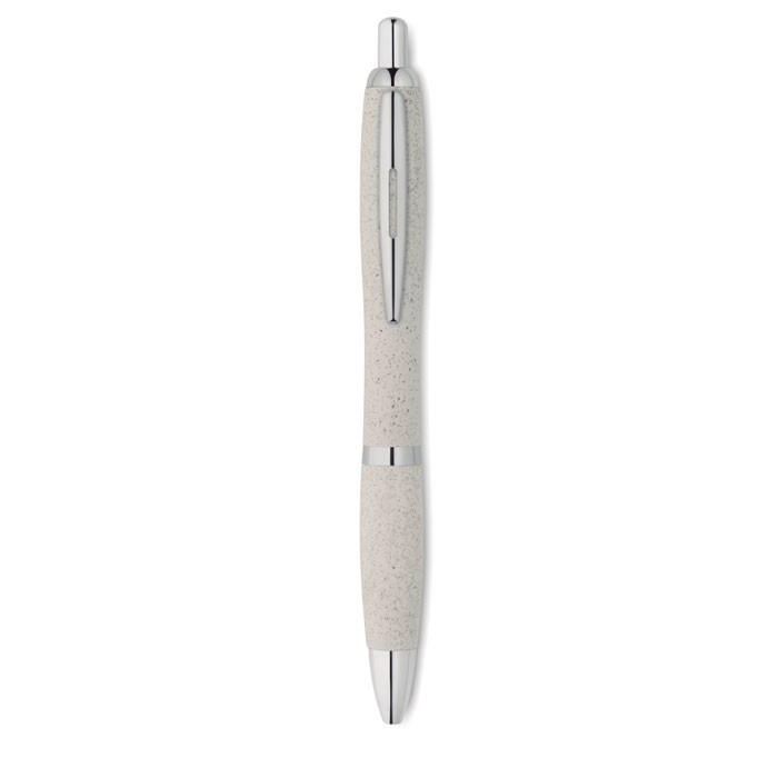 Długopis z przyciskiem 50% słomy pszennej 50% materiału ABS ze srebnym wykończeniem.Niebieski atrament.