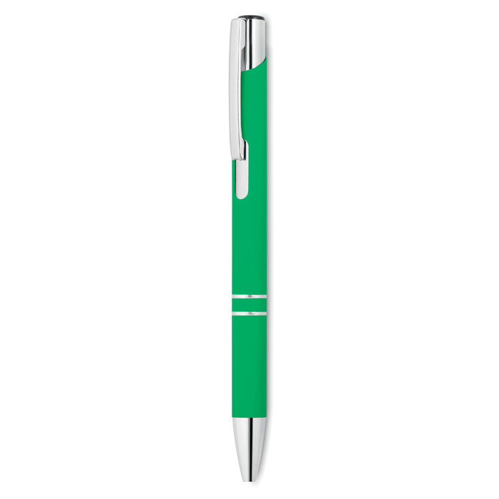 Przyciskany długopis wykończony miękkim tworzywem. Niebieski wkład.