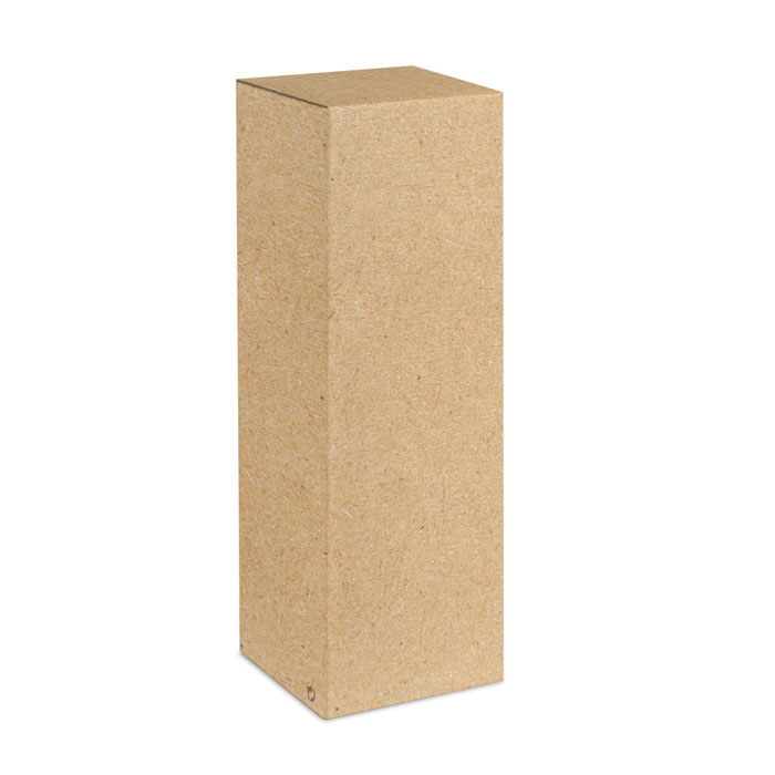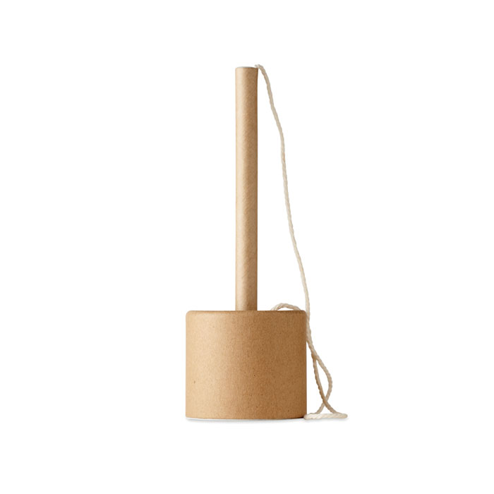Zestaw na biurko zawierający długopis z papierowym korpusem z elementami wykonanymi w 100% z kukurydzy PLA, przymocowany do podstawki za pomocą sznurka. Spód stojaka oklejony taśmą 3M®. Niebieski tusz.