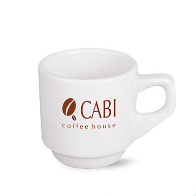 Bardzo mały kubeczek reklamowy wykonany z grubościennej porcelany. Rzadko spotykany kształt uchwytu idealnie współgra z prostymi ściankami.