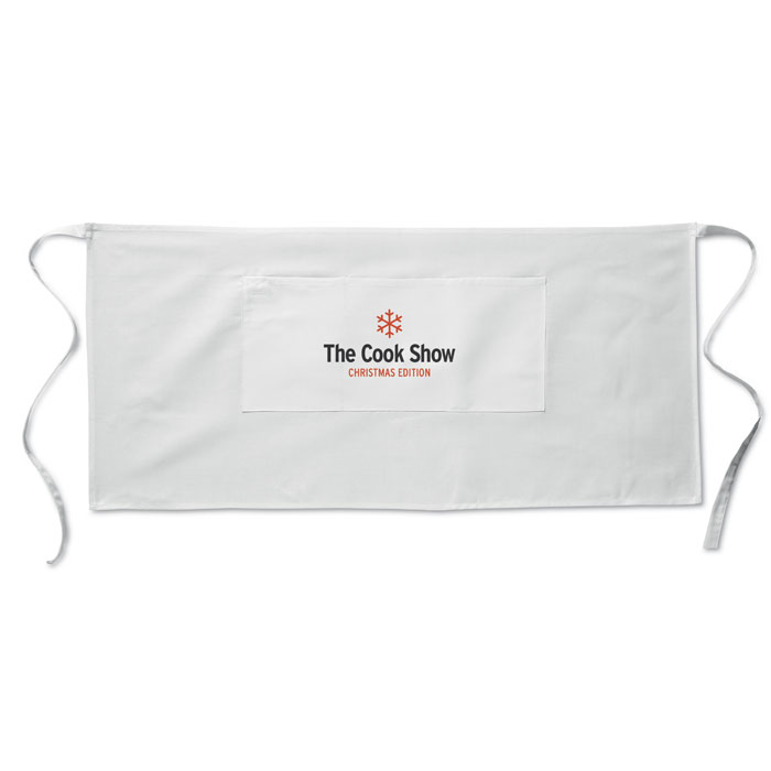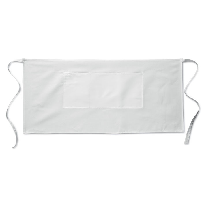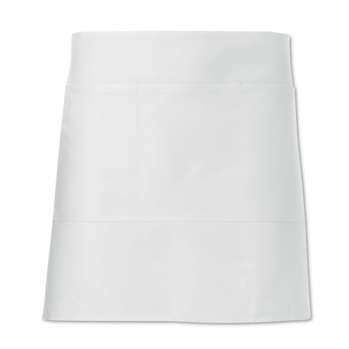 Krótki fartuch kuchenny typu zapaska, 195 gr/m². Wykonany w 90% z poliestru oraz 10% bawełny.