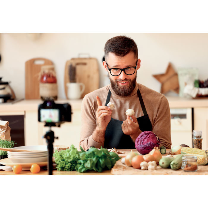 Fartuch kuchenny z 2 kieszeniami z przodu, z bawełny organicznej o gramaturze 200 gr/m².
