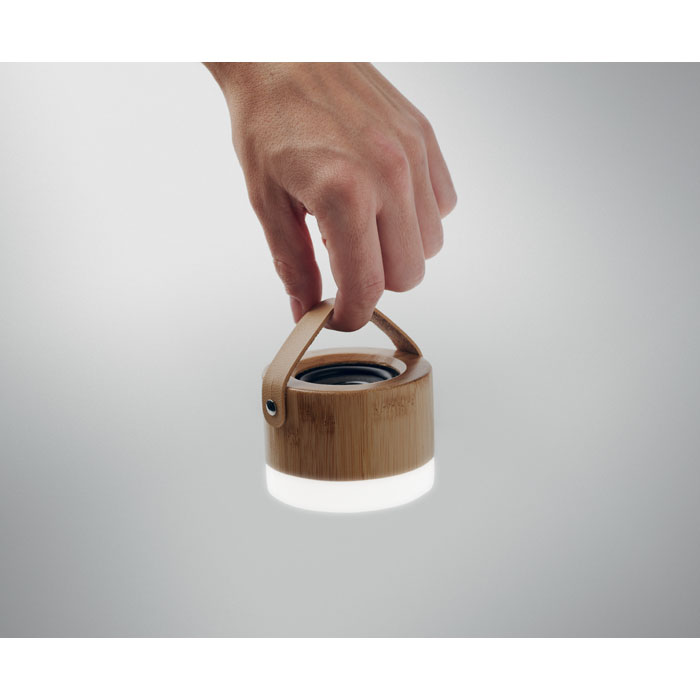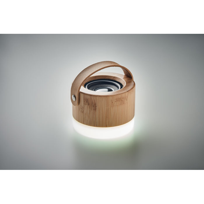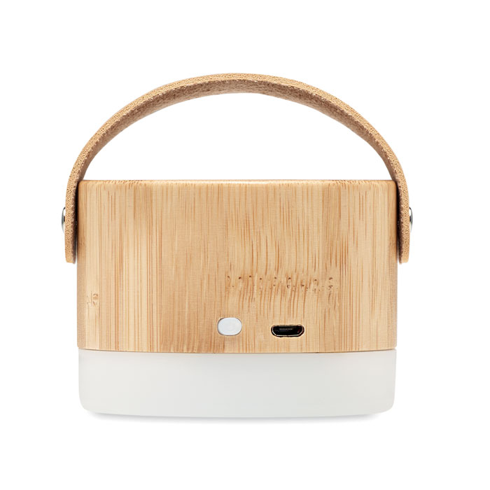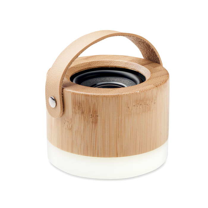 Bezprzewodowy głośnik 5.0 z tworzywa ABS, lekka bambusowa obudowa i pasek z PU. 1 akumulator Li-POL 300 mAh. Dane wyjściowe: 3W, 4 Ohm. Czas odtwarzania ok. 4 godz.