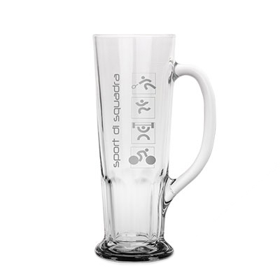 Bardzo wysoki, szklany kufel do piwa. Duże ucho zapewnia pewny i stabilny chwyt.