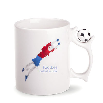 Ceramiczny kubek reklamowy z miejscem na dodatkowy gadżet reklamowy na uchwycie.