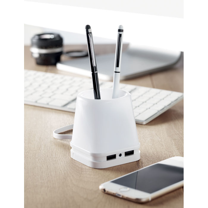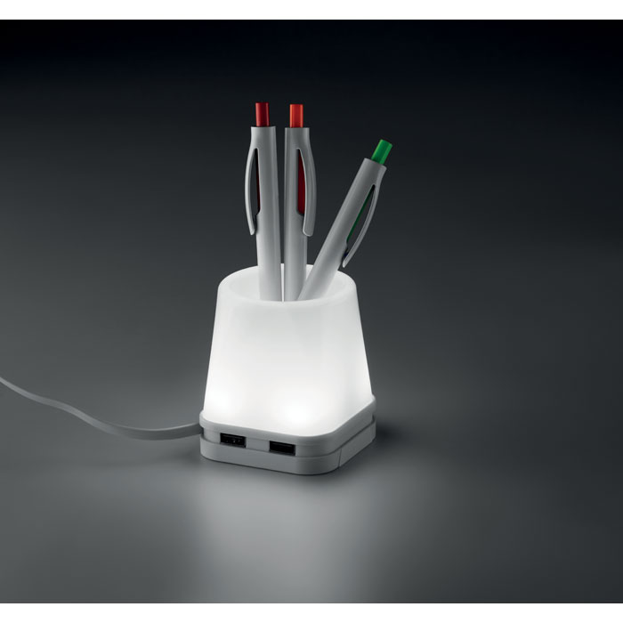 Pojemnik na długopisy – hub 4 USB. Posiada wbudowaną lampkę z 2 trybami świecenia.