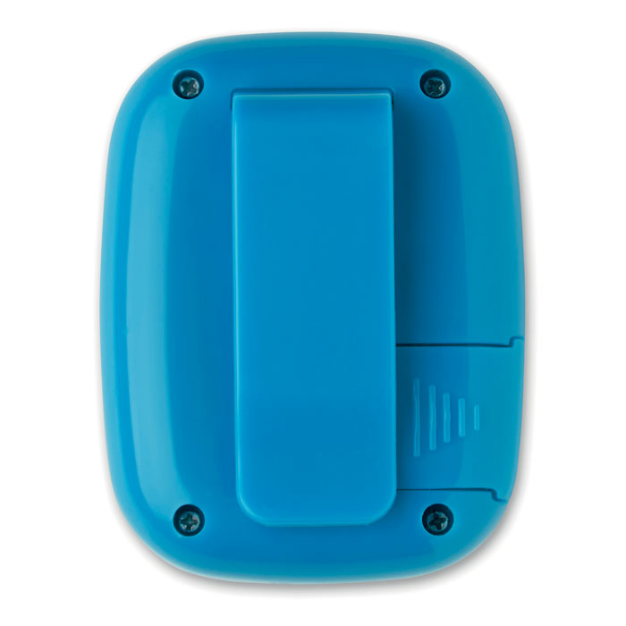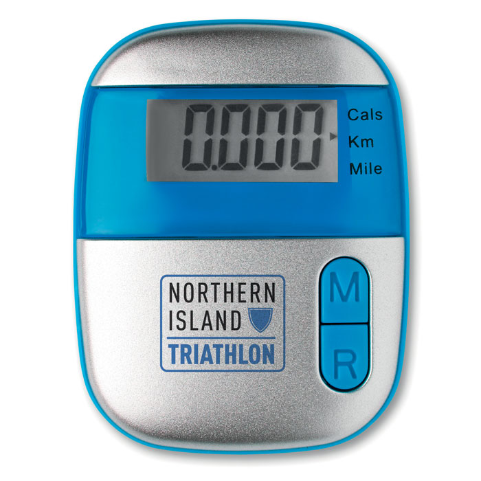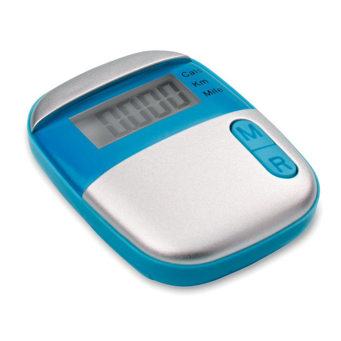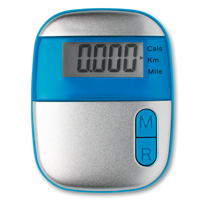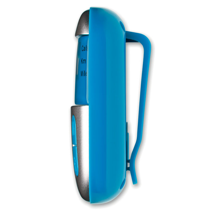 Krokomierz z klipsem w obudowie z ABS. Mierzy kroki, dystans (mile lub kilometry) i kalorie. 1 bateria guzik w komplecie.