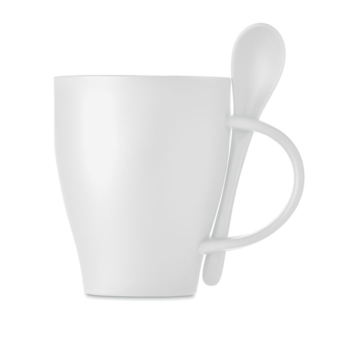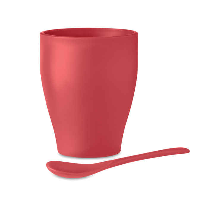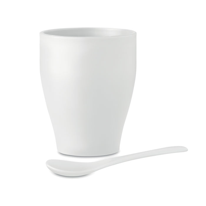 Kubek wielokrotnego użytku z PP z łyżeczką. Pojemność 300 ml.