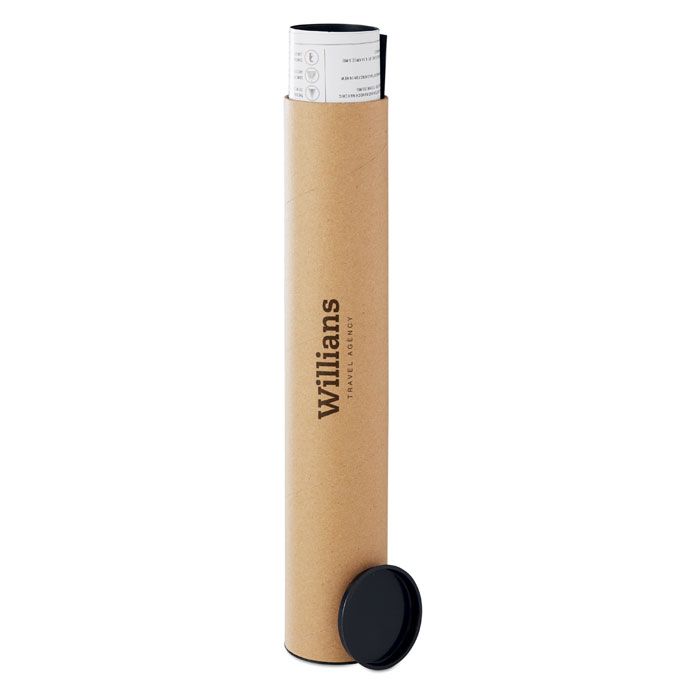 Mapa świata w formie zdrapki z chromowanego papieru. Zapakowana w papierową tubę. Wymiary mapy: 42×30 cm.