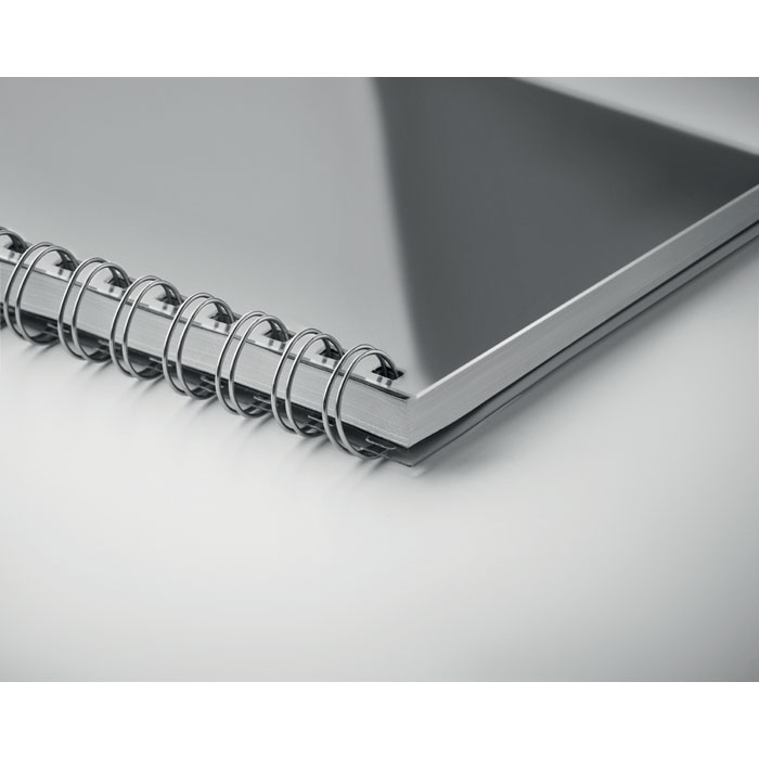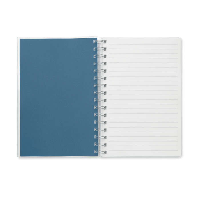 Notatnik A5 z okładką RPET. Podwójna spirala. 160 białych stron w linie pochodzących z recyklingu (80 kartek).