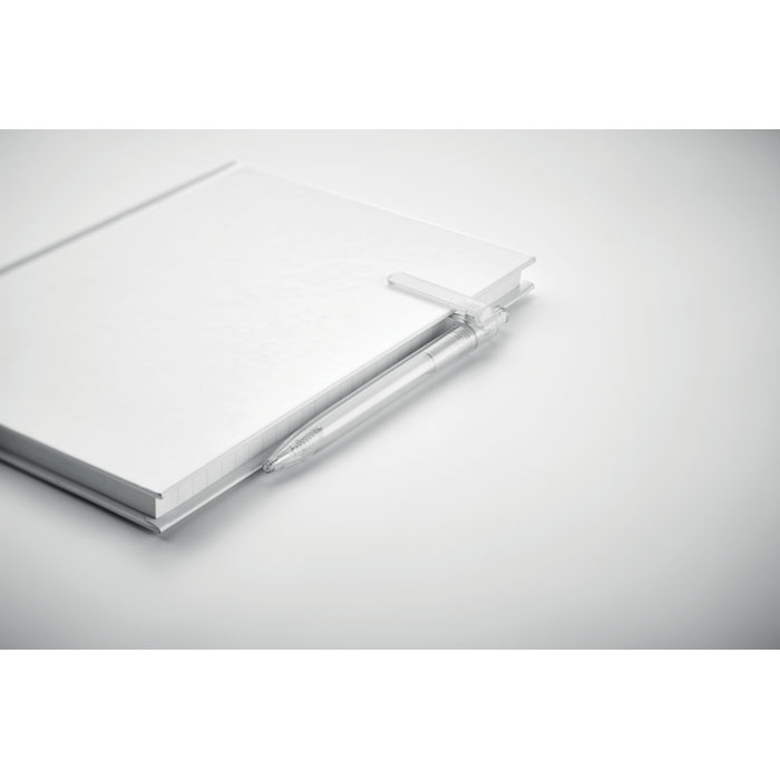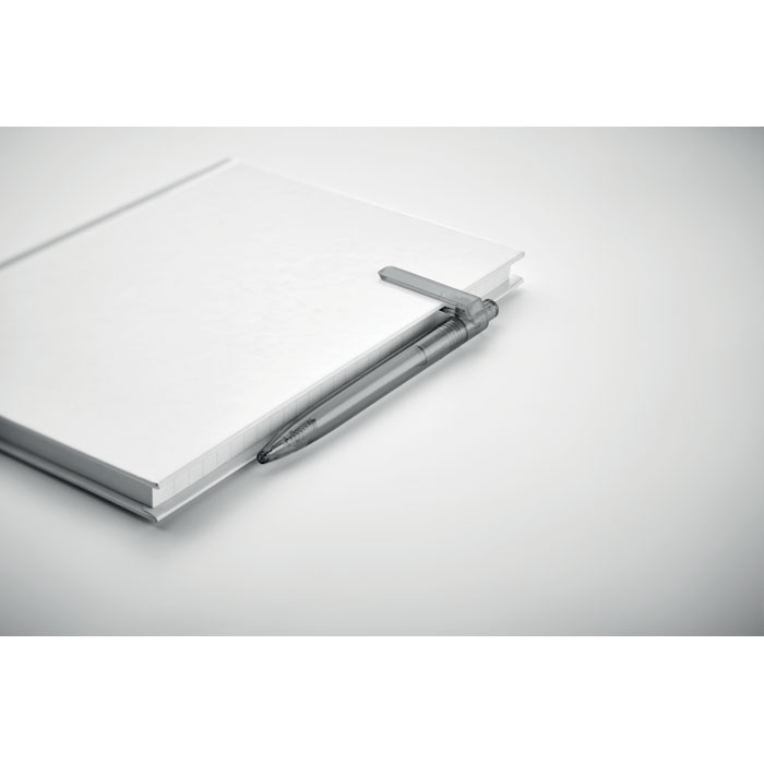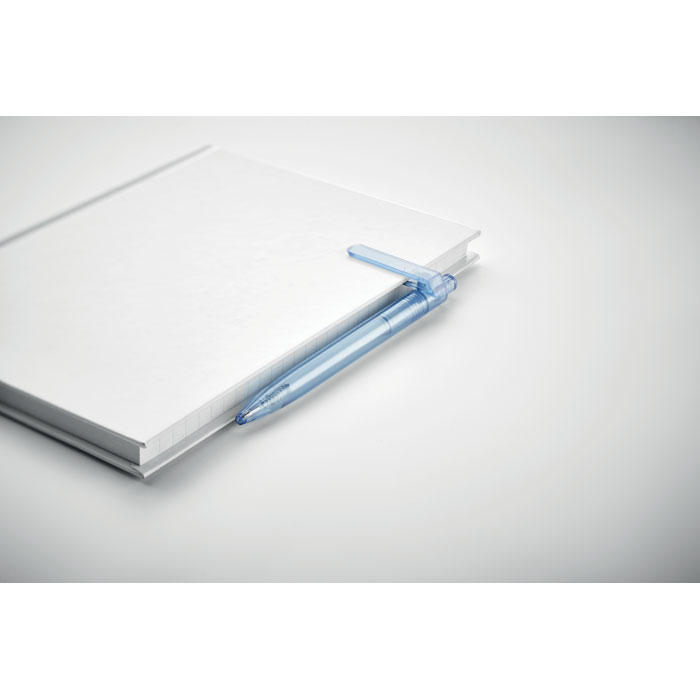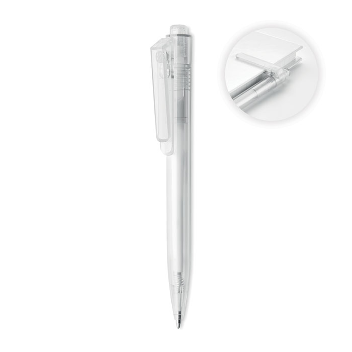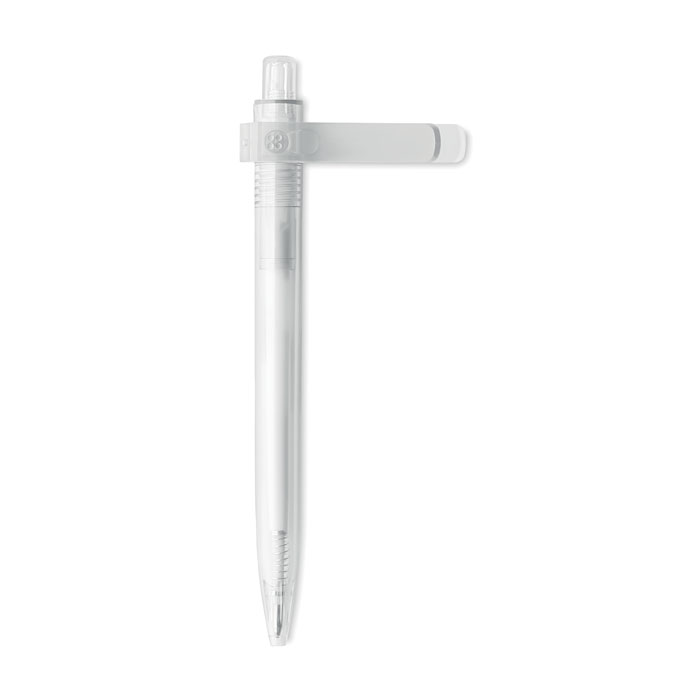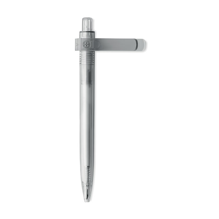 Przyciskany długopis z RPET z funkcją obracanego klipsa o 360 stopni do przyczepienia do notebooka. Tusz niebieski.