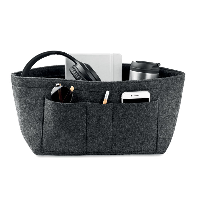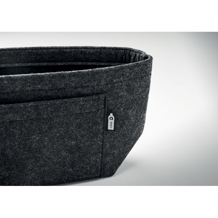 Organizer podróżny z filcu RPET z 2 wewnętrznymi i 4 zewnętrznymi przegródkami.