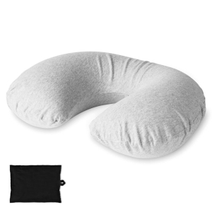 Piankowa poduszka podróżna wykonana z delikatnej tkaniny. Zapakowana w pokrowiec z poliestru 210D RPET.