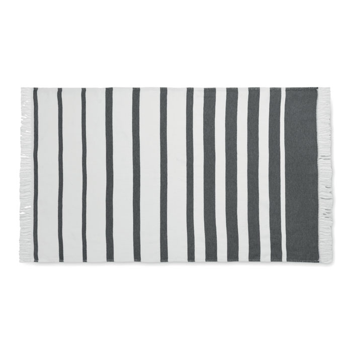 Ręcznik hammam z materiałów z recyklingu, 70% bawełna z recyklingu, 30% poliester SEAQUAL® z recyklingu. 300 gr/m² 100×170 cm. SEAQUAL® INITIATIVE współpracuje z organizacjami zajmującymi się oczyszczaniem oceanów na całym świecie, aby nadać wartość odzyskiwanym odpadom. Wyprodukowano w UE.