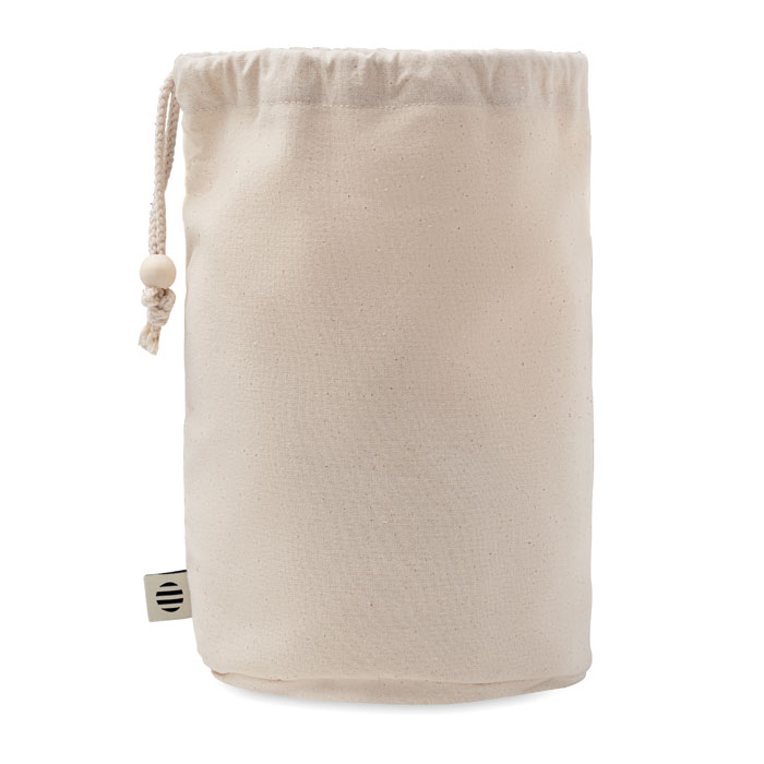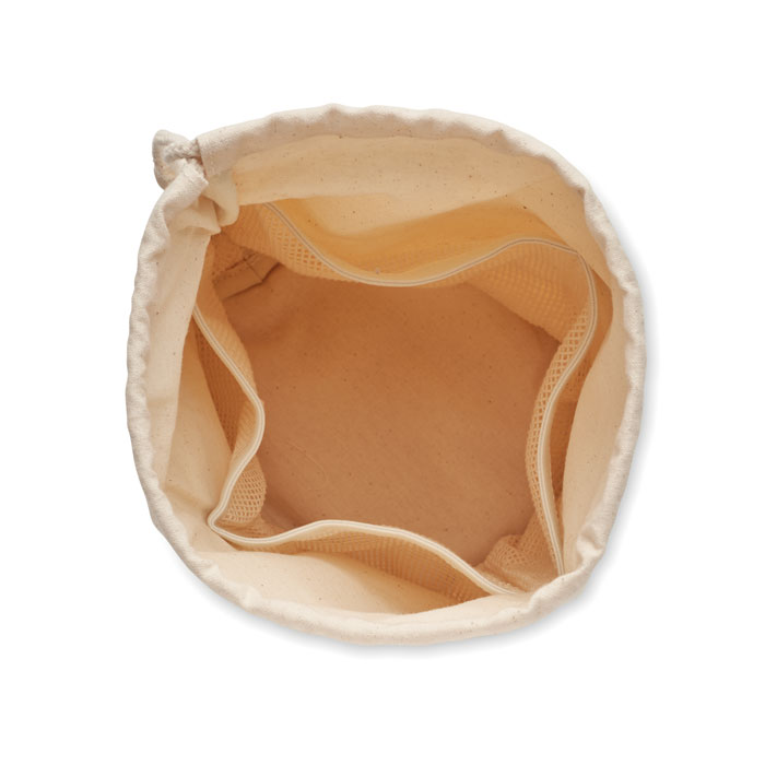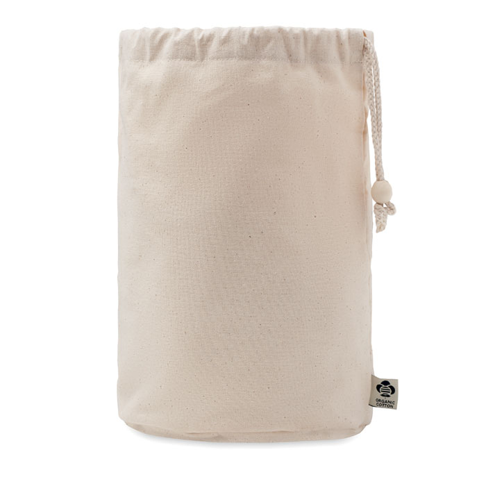 Torba na akcesoria z bawełny organicznej. 220 gr/m². Posiada wewnętrzne przegródki z siatki i drewnianą klamrę zamykającą.
