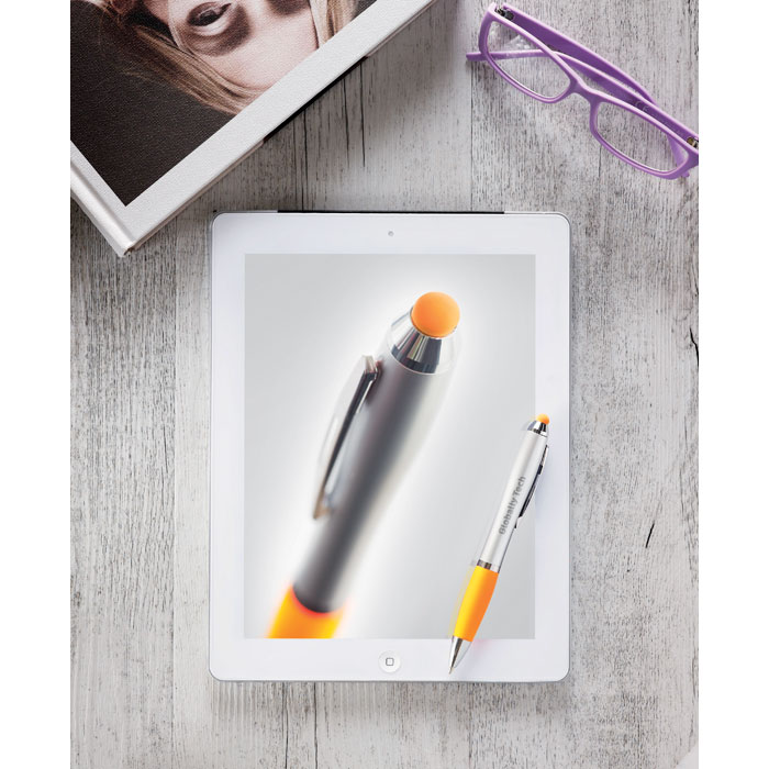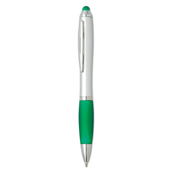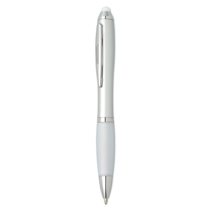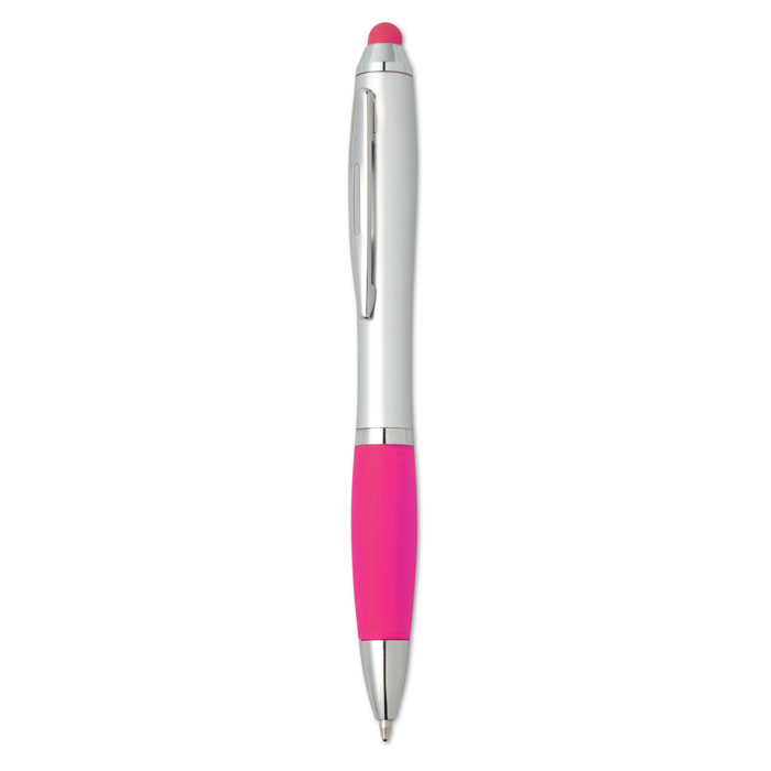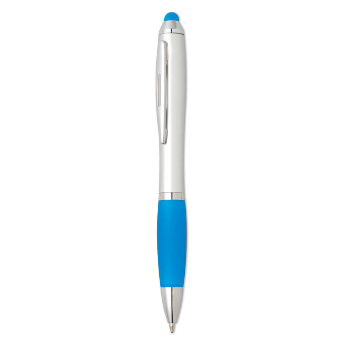 Plastikowy, przekręcany długopis z gumowanym uchwytem i kolorystycznie dobraną miękką końcówką. Niebieski wkład.
