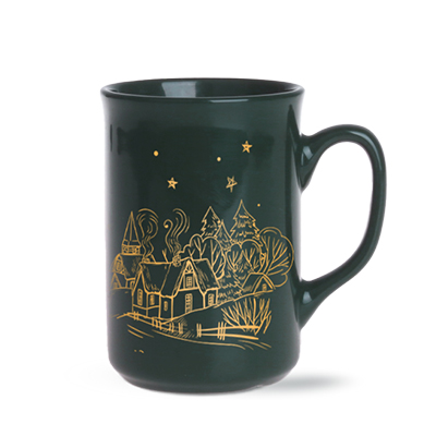Kubek opracowany na potrzeby jarmarków świątecznych. Posiada klasyczny kształt uchwytu oraz prosty korpus, umożliwiający sztaplowanie. Kubek posiada znacznik cechy ukazującej pojemność 200ml oraz znak podmiotu odpowiedzialnego za wprowadzenie na rynek. Oznaczenia są zgodne z wymogami Unii Europejskiej