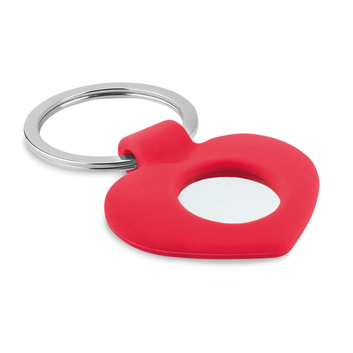 Silikonowy brelok w kształcie serca z metalowym żetonem.