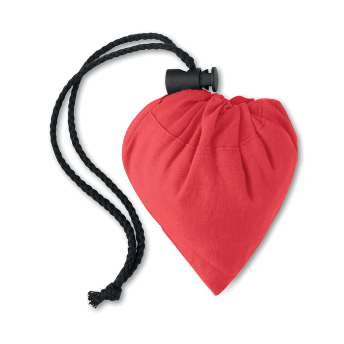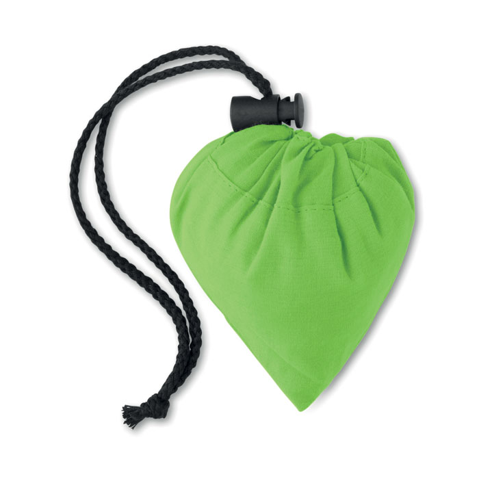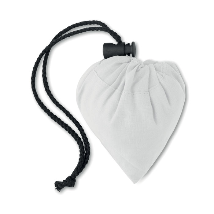 Składana torba na zakupy z bawełny o gramaturze 105 g/m2, z krótkimi uchwytami oraz z etui zamykanym na sznurek.