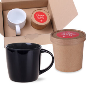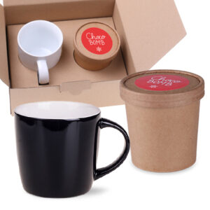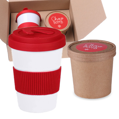 Fantazyjny zestaw zimowy składający się z kubka Coffee 2 Go Lock z dowolnym kolorem wieczka i opaski oraz ciemnoczekoladowej Choco Bomby, wypełnionej liofilizowanymi malinami, wyprodukowanej przez manufakturę czekolady. Kreatywny upominek dla koneserów czekoladowych napojów.