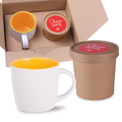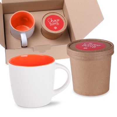 Fantazyjny zestaw zimowy składający się z kubka Handy Pure oraz ciemnoczekoladowej Choco Bomby, wypełnionej liofilizowanymi malinami, wyprodukowanej przez manufakturę czekolady. Kreatywny upominek dla koneserów czekoladowych napojów.