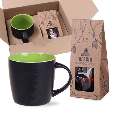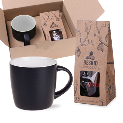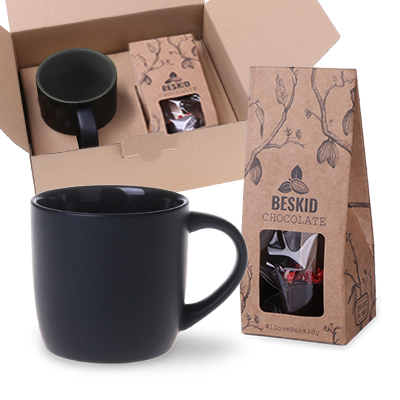 Zimowy zestaw z kubkiem Handy Supreme oraz Choco Stick produkcji rzemieślniczej z ciemnej czekolady z dodatkiem liofilizowanych truskawek. Wszystko zapakowane w eleganckie ekoOpakowanie, zdobione motywem świątecznym. Zestaw stworzony dla poszukujących nieszablonowych rozwiązań.
