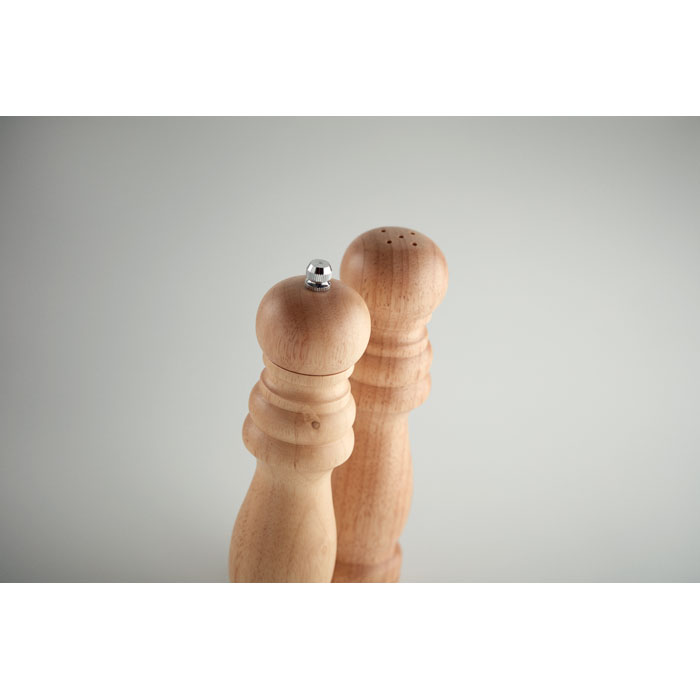 2-cześciowy zestaw, solniczka i młynek do pieprzu, wykonane z drewna kauczukowego z ceramicznym mechanizmem, pakowane w białe pudełko.