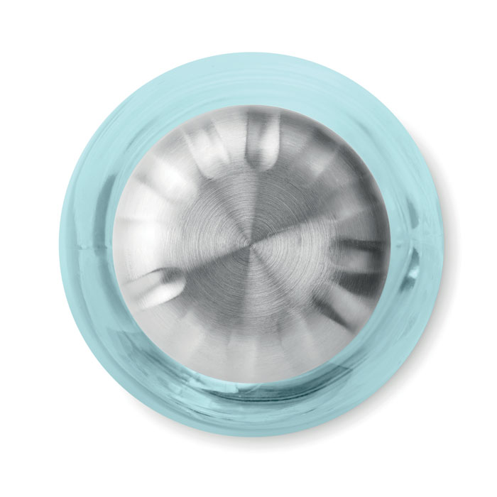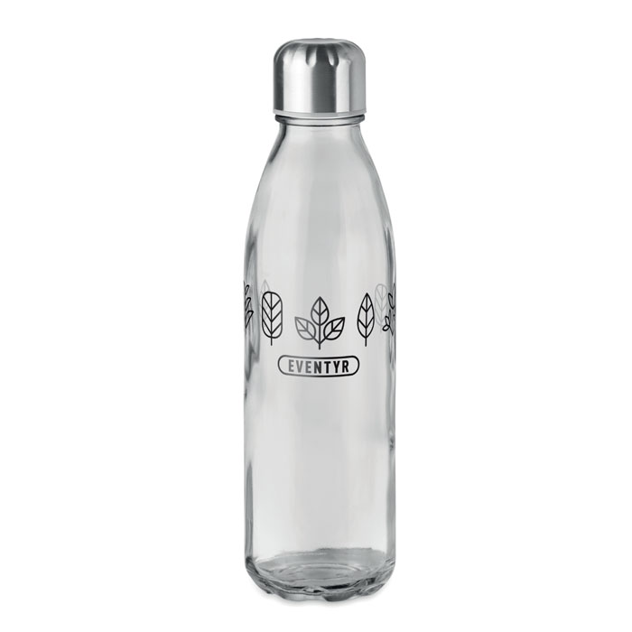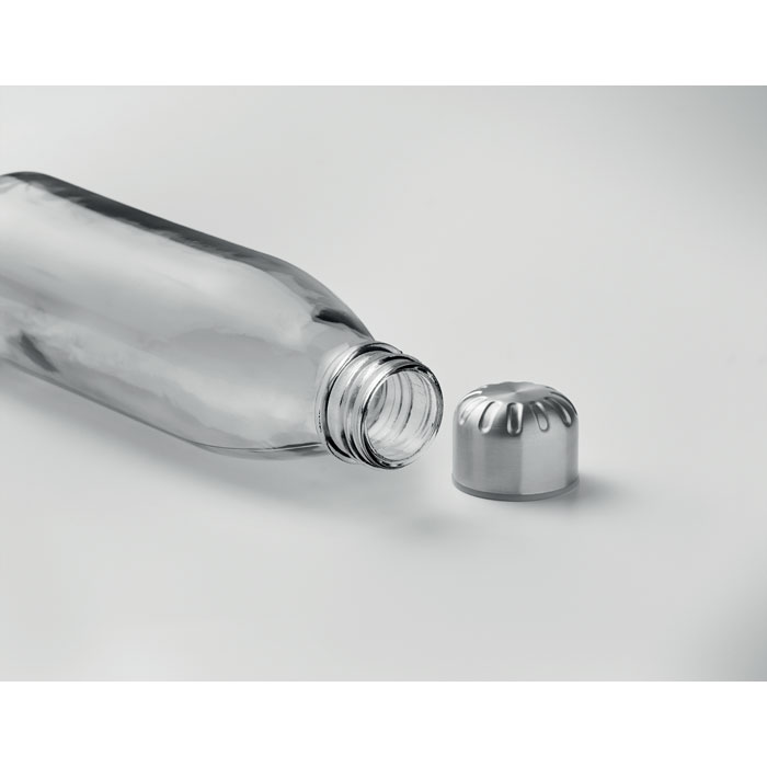 Szklana butelka z pokrywką ze stali nierdzewnej. Pojemność: 650 ml. Nie nadaje się do napojów gazowanych. Szczelna.