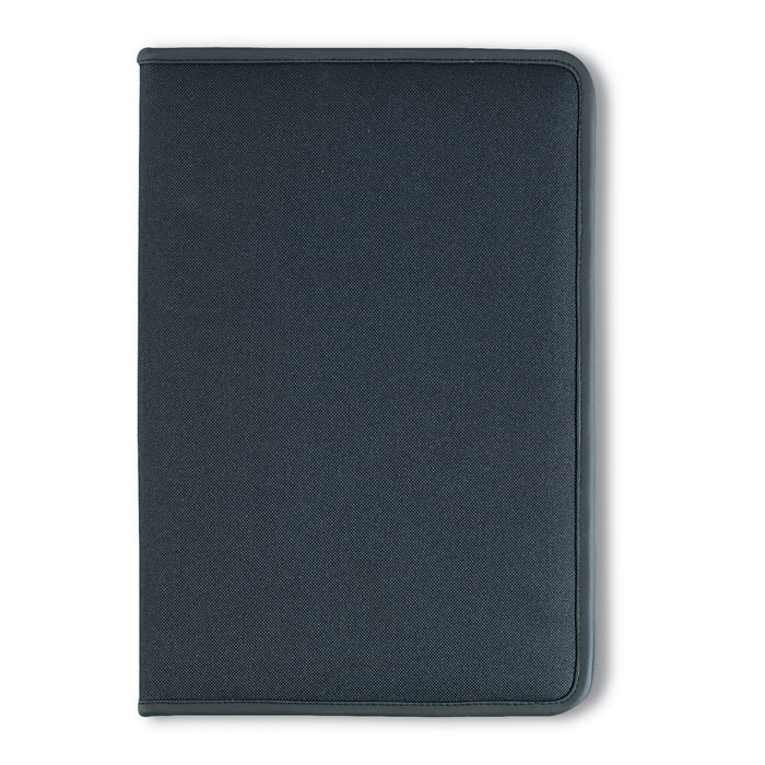 Teczka konferencyjna A4. Poliester 600D i podszewka 210T. Zapinana na zamek błyskawiczny. Zawiera 20-kartkowy notes A4 w linie, 4 przegródki oraz kieszonkę na karty.