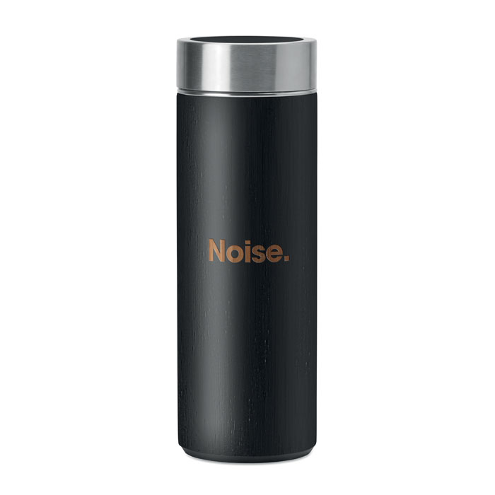 Termos z podwójnymi ściankami, stal nierdzewna z bambusową obudową, 400 ml, z dodatkowym zaparzaczem do herbaty. Ponieważ bambus jest materiałem naturalnym, kolory poszczególnych produktów mogą się różnić. Bambus jest produktem naturalnym, dlatego mogą wystąpić nieznaczne różnice w kolorze, wzorze i rozmiarze.