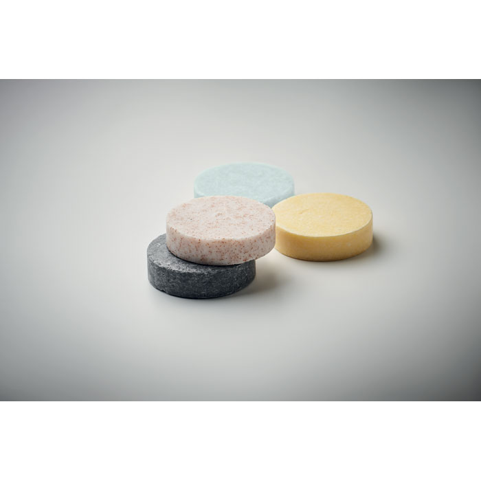 Podróżny zestaw upominkowy unisex marki Branded by Earth. Zawiera cztery 50gr wegańskie kostki: do mycia ciała, włosów, do pilingu twarzy oraz wodę micelarną również w kostce. Do zestawu dołączony jest woreczek podróżny wykonany z bawełny organicznej. Każda kostka zapakowana w papier. Całość w pudełku z papieru z recyklingu. Wyprodukowano w UE.
