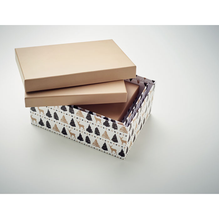 Zestaw 3 świątecznych pudełek papierowych na prezenty, 128 gr, w różnych rozmiarach: małe, średnie i duże.