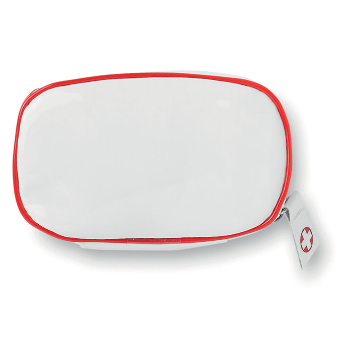 Zestaw pierwszej pomocy: 1 para nożyczek, 3 bandaże, 1 rolka waty, 2 chusteczki czyszczące, 5 plastrów samoprzylepnych, 1 rolka plastra i 6 patyczków z wacikami.