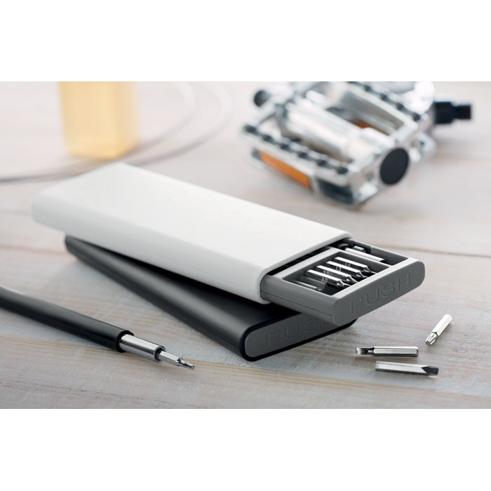 24- częściowy zestaw śrubokrętów do precyzyjnej naprawy małych elementów, w pudełku z ABS z otwarciem typu push.