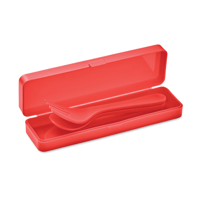 Zestaw przenośnych sztućców z PP wielokrotnego użytku i z etui. Zawiera łyżkę, widelec i nóż.